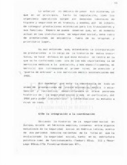 13 Lo anterior no debiera de pasar sin acotarse, ya que en un principio, tanto la legislación, como ios organismos operativos surgen por demandas laborales de higiene y seguridad en el trabajo, y ademas, por ei intento de conseguir prestaciones económicas para los trabajadores y sus familias. Empero se puede observar que, en el momento actual en las instituciones de seguridad social, este rubro de prestaciones se encuentra fuera de su original y prioritario lugar. Es así entonces que, entendiendo ia incorporación de prestaciones a lo largo de ia historia de estos insti tutos, se hace énfasis en que este estudio se centra en ia que se ha conformado como una de las más importantes; ia de servicios médicos a la población, y más específicamente, el servició que corresponde al primer nivel de atención y "puerta de entrada" a los servicios médico asistencíales del IMSS. Sin desdeñar por esto la importancia de todo un orden de prestaciones de índole económica, médica o asís- tencial y recreativa, desarrollaremos un breve panorama histórico de la seguridad social y mas en particular, del IMSS para poder ciscunscrib ir y contextualizar su estudio a nivel de caso. b)De la integración a la coordinación Obviando ia historia de la seguridad social en Europa, existe en términos amplios, consenso entre algunos estudiosos de la seguridad social en América latina, acerca de dos períodos básicos recientes de la forma en que ha evolucionado la seguridad social, tanto en su estructura política como de funcionamiento (Tamburi 85:p. 112 ; Mesa- Lago 85b:p.179; Pinstrup-Andersen 87).