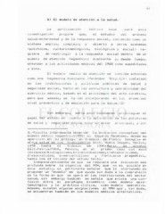 o 1 b) El modelo de atención a la salud. La aproximación teórica base para esta investigación propone que, el estudio del proceso salud/enfermedad y de la respuesta social, concebido como un sistema amplio, complejo, y abierto a otros sistemas (políticos, culturoideológicos, biológicos y social) re quiere de restringir a ia respuesta social dentro de un modelo de atención hegemónico dominante y, desde luego, entender a ias actividades médicas del IMSS como supeditadas a éste. El modelo médico de atención se concibe entonces como una hegemonía dominante (Menéndez 30:p.224; instalado en las instituciones y políticas públicas de salud y seguridad social, tanto en las estructura y operatividad del ejercicio médico, basado en el privilegio del acto curativo, pero que además, se ha ido incorporando en las áreas del nivel preventivo y de educación para la salud.(3) Sin embargo, sería poco cuidadoso privilegiar el papel del estado en cuanto a la aplicación de las políticas de salud y seguridad social como el actor principal, y por 3.-Resulta interesante observar la evolución conceptual del modelo médico hegemónicoCMMH) en Eduardo Menéndez, desde su aparición en el prólogo al trabajo de Franco Basaglia et al:La salud de los trabajadores Edit. Nueva Imagen, México, 1978 hasta el trabajo de 1990:Mor ir de ale ohoi Edit.Patria/FNCA, México, en el primer caso con seis inci sos:a)b iologic ismo,b)i nd iv idual ismo,c)ah ist or icidad, d)asoc íal idad , e) mercan ti1ismo y f.'eficacia pragmática, hasta los 24 incisos del último texto. Independientemente de que se requiere una discusión más profunda sobre la vigencia del MMH, que no es posible en este estudio, es pertinente señalar que lo afortunado de proponer un "modelo" es que ayuda sin duda ala comprensión de la forma en que se opera en las instituciones del sector salud, sin embargo también se señala que existe una con fusión entre el paradigma biomédico como modelo epis temológico y la práctica clínica, como modelo operativo. Además, existen algunas asignaciones al MMH que , sin duda, se encuentran también en los modelos médicos alternativos.