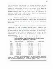las unidades del área urbana, en las que se duplicó la PAU, mientras que, a nivel rural decreció un 9.17.. En promedio anual, el área urbana creció a un 10.04"/., y la media de crecimiento porcentual anual fue de 5.87. en la década,mientras que, en el área rural se registró un descenso anual del 0.97. y una media de crecimiento porcentual del -0.47.. (cuadro No. 4) Estos promedios, sin embargo, mostraron varaciones en las que, particularmente en 1985 y 1989 se registraron descensos, siendo los mayores los de la unidad médica del área rural. También se compararon los datos del crecimiento registrado en las unidades médicas (PAU), respecto del incremento estimado de la población total del municipio. Así se pudo observar que, en términos generales, la adscrpción a las unidades del IMSS correspondió a la mitad de los habitantes en el municipio de Hermosillo (cuadro No.5 y Gráfica No.3). CUADRO No.5. RELACIÓN ENTRE POBLACIÓN ADSCRITA Y HABITANTES MUNICIPIO DE HERMOSILLO 1980-1990. Año PAU MUNICIPAL HABITANTES 7. COBERTURA 1980 144,240 273,530 52.7 1981 151,102 287,350 52. 5 1982 162,571 301,869 58.8 1983 172,448 317,121 54.3 1984 181,484 333,144 54.4 1985 180,413 349,976 51.5 1986 201,569 367,659 54.8 1937 205,985 úOO f jí! Jb C-r^ *~, JvJ • «_¿ 1988 238,996 405,757 58.3 1989 208,802 426,259 46.9 1990 .¿!o 1 f /oü 449,734 51. 1 Fuente; Informe mensual de actividades médicas, Forma MF-13. Estimación en base a resultados preliminares del XI Censo de Población y Vivienda, INEGI, 1390.