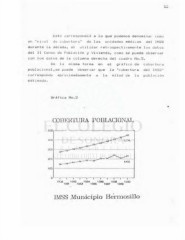 Esto correspondió a lo que podemos denominar como un "nivel de cobertura" de las unidades médicas del IM33 durante la década, al utilizar retrospectivamente los datos del XI Censo de Población y Vivienda, como se puede observar con los datos de la columna derecha del cuadro No.5. De la misma forma en el gráfico de cobertura poblacional,se puede observar que la "cobertura del IMSS" corresponde aproximadamente a la mitad de la población estimada. Gráfica No.3 COBERTURA POBLACIONAL SCO ACÓ Z>."0 2CO X- 100 0 ._ n r j j ( j 1 1 T 1 j— tSaa 1932 1934 190B 1933 1990 1931 1933 1935 1937 tí IMSS .Municipio Hermosilló