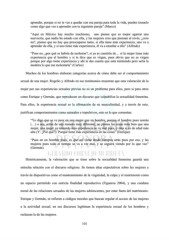 aprender, porque si no te vas a quedar con esa pareja para toda la vida, puedes tomarlo como algo que vas a aprender con tu siguiente pareja” (Marco) “Aquí en México hay mucho machismo, uno piensa que es mejor agarrar una nuevecita, que nadie ha estado con ella, y las mujeres creo que piensan al revés, ¿creo no?, pienso que no hay que preocuparse tanto, si ella tiene más experiencia, uno va a aprender de ella, y si uno tiene más experiencia, él va a enseñar a ella” (Alfredo) “Pues no, ¿por qué se habría de molestar?, si ya es cuestión de… si la mujer tiene más experiencia que el hombre y si te dice que es virgen, pues obvio que no es virgen porque por algo tiene experiencia y ahí te das cuenta que está mintiendo pero sería la mentira lo que me molestaría” (Carlos) Muchos de los hombres elaboran categorías acerca de cómo debe ser el comportamiento sexual de una mujer. Rogelio y Alfredo en sus testimonios muestran que esta valoración de la mujer por sus experiencias sexuales previas no es un problema para ellos, pero si para otros como Enrique y Germán, que reproducen un discurso que culpabiliza la sexualidad femenina. Para ellos, la experiencia sexual es la afirmación de su masculinidad, y a través de esto, justifican comportamientos como naturales e impulsivos, esto es lo que comentan: “Yo digo que se ve peor en una mujer que un hombre, porque el hombre pues nomás (…) o sea, actúa de una manera muy diferente, no piensa las cosas más bien que una mujer, una mujer ya teniendo más experiencia se ve mal pues, y más si es de edad más alta (Y: ¿Por qué?): Porque tiene más experiencia en las cosas” (Enrique) “Pues en un hombre pues, es que así viene desde tiempos atrás pues por eso, y las mujeres pues todo el tiempo se va a ver mal, y se seguirá viendo por lo que veo” (Germán) Históricamente, la valoración que se tiene sobre la sexualidad femenina guarda una estrecha relación con el discurso religioso. Se tienen altas expectativas sobre las mujeres a través de dispositivos como el mantenimiento de la virginidad, la culpa y el matrimonio como un espacio permitido con estricta finalidad reproductiva (Figueroa 2004), y una condena moral de las relaciones sexuales de las mujeres adolescentes, por estar fuera del matrimonio. Enrique y Germán, se refieren a códigos morales que buscan regular el acceso de las mujeres a la actividad sexual; en sus discursos legitiman la experiencia sexual de los hombres y rechazan la de las mujeres. 101