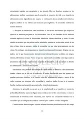 estructurales impiden una apropiación y un ejercicio libre de derechos sexuales en los adolescentes, también encontramos que la creación de proyectos de vida y su situación de adolescentes como dependientes del hogar y la continuación de sus estudios universitarios, propicia cambios en sus habitus que reconocen que el género y la sexualidad cambian de manera dinámica. La búsqueda de información sobre sexualidad es otro de los mecanismos que reflejan un ejercicio de derechos por parte de los adolescentes. Uno de los elementos de los derechos sexuales implica el acceso de información basada en fuentes científicas y laicas. En este estudio se encontró que los padres son los principales agentes de la educación sexual de sus hijos e hijas, ellos se acercan a hablar de sexualidad con sus hijos, principalmente con las chicas. Sin embargo, los adolescentes no tienen la confianza suficiente para dirigirse con sus padres, por lo que buscan medios alternativos de información como la plática con amigos, internet, televisión y revistas. Parece ser que ese aspecto de la sexualidad como algo oculto y pecaminoso aún continúa vigente en sus esquemas de percepción. Aun así, ejercen su derecho a la información a través de otros agentes. Para analizar esto, partimos del concepto de capital social, en donde los y las adolescentes tienden a hacer uso de una red de relaciones de mutua familiaridad entre los agentes que guardan posiciones similares en el campo, como las relaciones de amigos, a través de las cuales expresan sus intereses sobre sexualidad y resuelven dudas, lo que en el contexto familiar implica una trasgresión generacional o violación de jerarquías. Asimismo, lo aprendido en su casa y en la escuela tiende a ser repetitivo y carente de profundidad. Entre las respuestas figura la necesidad de renovar del conocimiento, es decir, la actualización de temáticas sobre sexualidad, esto implica una concepción dinámica de la sexualidad que se configura de acuerdo al contexto y los cambios sociales emergentes. Cuando existen obstáculos para adquirir información sobre sexualidad a través del campo 125