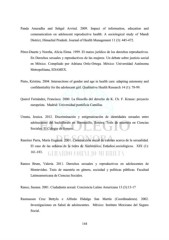 Panda Anuradha and Sehgal Arvind. 2009. Impact of information, education and communication on adolescent reproductive health: A sociological study of Mandi District, Himachal Pradesh. Journal of Health Management 11 (3): 445-472. Pérez-Duarte y Noreña, Alicia Elena. 1999. El marco jurídico de los derechos reproductivos. En Derechos sexuales y reproductivos de las mujeres. Un debate sobre justicia social en México. Compilado por Adriana Ortíz-Ortega. México: Universidad Autónoma Metropolitana, EDAMEX. Pinto, Kristina. 2004. Intersections of gender and age in health care: adapting autonomy and confidentiality for the adolescent girl. Qualitative Health Research 14 (1): 78-99. Querol Fernández, Francisco. 2000. La filosofía del derecho de K. Ch. F. Krause: proyecto europeísta. Madrid: Universidad pontificia Camillas. Urueta, Jessica. 2012. Discriminación y estigmatización de identidades sexuales entre adolescentes del bachillerato en Hermosillo, Sonora. Tesis de maestría en Ciencias Sociales. El Colegio de Sonora. Ramírez Parra, María Eugenia. 2001. Construcción social de valores acerca de la sexualidad. El caso de las señoras de la tierra de Xochimilco. Estudios sociológicos. XIX (1): 161-183. Ramos Brum, Valeria. 2011. Derechos sexuales y reproductivos en adolescentes de Montevideo. Tesis de maestría en género, sociedad y políticas públicas. Facultad Latinoamericana de Ciencias Sociales. Rance, Susana. 2001. Ciudadanía sexual. Conciencia Latino Americana 13 (3):13-17 Rasmussen Cruz Bettylu e Alfredo Hidalgo San Martín (Coordinadores). 2002. Investigaciones en Salud de adolescentes. México: Instituto Mexicano del Seguro Social. 144