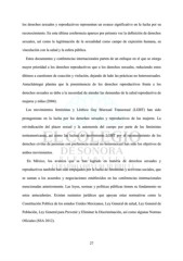 los derechos sexuales y reproductivos representan un avance significativo en la lucha por su reconocimiento. En esta última conferencia aparece por primera vez la definición de derechos sexuales, así como la legitimación de la sexualidad como campo de expresión humana, su vinculación con la salud y la esfera pública. Estos documentos y conferencias internacionales parten de un enfoque en el que se otorga mayor prioridad a los derechos reproductivos que a los derechos sexuales, reduciendo estos últimos a cuestiones de coacción y violación, dejando de lado las prácticas no heterosexuales. Amuchástegui plantea que la preeminencia de los derechos reproductivos frente a los derechos sexuales se debe a la necesidad de atender las demandas de la salud reproductiva de mujeres y niñas (2004). Los movimientos feministas y Lésbico Gay Bisexual Transexual (LGBT) han sido protagonistas en la lucha por los derechos sexuales y reproductivos de las mujeres. La reivindicación del placer sexual y la autonomía del cuerpo por parte de las feministas norteamericanas, así como las luchas del movimiento LGBT por el reconocimiento de los derechos civiles de personas con preferencia sexual no heterosexual han sido los objetivos de ambos movimientos. En México, los avances que se han logrado en materia de derechos sexuales y reproductivos también han sido empujados por la lucha de feministas y activistas sociales, que se suman a los acuerdos y negociaciones establecidos en las conferencias internacionales mencionadas anteriormente. Las leyes, normas y políticas públicas tienen su fundamento en estos antecedentes. Existen sustentos jurídicos que apoyan estas normativas como la Constitución Política de los estados Unidos Mexicanos, Ley General de salud, Ley General de Población, Ley General para Prevenir y Eliminar la Discriminación, así como algunas Normas Oficiales (SSA 2012). 27