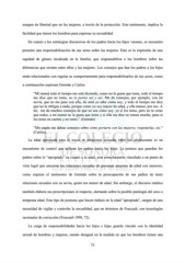 margen de libertad que en las mujeres, a través de la protección. Este testimonio, implica la facilidad que tienen los hombres para expresar su sexualidad. En cuanto a las estrategias discursivas de los padres hacia los hijos varones, se encuentra presente una responsabilización de sus actos sobre las mujeres. Esto es la expresión de una equidad de género inculcada en la familia, que responsabiliza a los hombres sobre las diferencias que existen entre ellos y las mujeres. Los consejos que dan los padres a los hijos están relacionados con regular su comportamiento para responsabilizarlos de sus actos, como a continuación expresan Germán y Carlos: “Mi mamá todo el tiempo me está diciendo, como no le gusta que tome, todo el tiempo me dice que no tome, no te portes así y así. Me da consejos, por ejemplo, con mi novia, que no me pase con ella, mi amá ya sabe cómo soy, y todo el tiempo me dice que no la obligue a nada, porque como yo soy mayor de edad, y ella menor, por eso. A mí, me da muchos consejos de que no sea como soy, yo sí los tomo, pero no te creas que todos, a mi mamá no le gusta que tome y si ella me dice no tomes mucho, pues sí los tomo en cuenta y no tomo.” (Germán) “Mis papás me daban consejos sobre cómo portarte con las mujeres, respetarlas, etc.” (Carlos). La edad apropiada para el inicio de relaciones sexuales entre los adolescentes es un mecanismo de control que utilizan los padres hacia los hijos. La postura que guardan los padres sobre lo “apropiado” en cuanto a la edad, está estrechamente vinculado a un punto de vista legal que sanciona las relaciones sexuales de personas mayores de edad con menores, como expresa el testimonio de Germán sobre la preocupación de sus padres de tener relaciones sexuales con su novia, quien era menor de edad. Sin embargo, el discurso médico también elabora sus prescripciones al respecto, alertando sobre la posible patología del sexo a temprana edad. Este tipo de posturas que hacen énfasis en la edad “apropiada”, surgen de una necesidad de vigilar y controlar la sexualidad, que en términos de Foucault, son tecnologías racionales de corrección (Foucault 1998, 72). La carga de responsabilidades hacia los hijos e hijas guarda vínculo con la identidad sexual de hombres y mujeres, siendo desigual en la medida en que los hombres tienen una 75