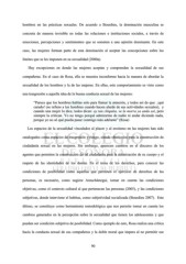 hombres en las prácticas sexuales. De acuerdo a Bourdieu, la dominación masculina se concreta de manera invisible en todas las relaciones e instituciones sociales, a través de emociones, percepciones y sentimientos que se someten a una opinión dominante. En este caso, las mujeres forman parte de esta dominación al aceptar las concepciones sobre los límites que se les imponen en su sexualidad (2000a). Hay excepciones en donde las mujeres aceptan y comprenden la sexualidad de sus compañeras. En el caso de Rosa, ella se muestra inconforme hacia la manera de abordar la sexualidad de los hombres y la de las mujeres. En ellas, este comportamiento es visto como una trasgresión a aquella idea de la buena conducta sexual de las mujeres: “Parece que los hombres hablan solo para llamar la atención, y todos así de que: ¡qué curado! (se refiere a los hombres cuando hacen alarde de sus actividades sexuales), y cuando una mujer lo dice, todos dicen: ay tan chiquita, ve la morra ya anda así, pero siempre la critican. Yo no tengo porqué admirarme de nadie ni andar diciendo nada, porque yo no sé qué pueda pasar conmigo más adelante” (Rosa) Los espacios de la sexualidad vinculados al placer y al erotismo en las mujeres han sido catalogados como espacios de trasgresión y riesgo, siendo obstáculos para la construcción de ciudadanía sexual en las mujeres. Sin embargo, aparecen cambios en el discurso de los agentes que permiten la construcción de tal ciudadanía para la autorización de su cuerpo y el respeto de las identidades de los demás. En el tema de los derechos, para conocer las condiciones de posibilidad como aquellas que permiten el ejercicio de derechos de las personas, es necesario, como sugiere Amuchástegui, tomar en cuenta las condiciones objetivas, como el contexto cultural al que pertenecen las personas (2005), y las condiciones subjetivas, donde interviene el habitus, como subjetividad socializada (Bourdieu 2007). Este último, se constituye como herramienta metodológica que nos permite tomar en cuenta los cambios generados en la percepción sobre la sexualidad que tienen los adolescentes y que pueden ser condición subjetiva de posibilidad. Como ejemplo de esto, Rosa realiza una crítica hacia la conducta sexual de sus compañeros y la doble moral que impera al no permitir ese 90