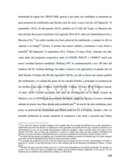 dominando la región fue CIRNO-2008, gracias a que entre sus cualidades se encuentra su gran potencial de rendimiento que fluctúa entre las siete y nueve ton./ha. (El Imparcial, 18 septiembre, 2013). El año pasado (2013), también en el Valle del Yaqui, se liberaron dos más (de tipo duro) para el próximo ciclo agrícola 2014-2015, éstas son Quetchehueca Oro y 97 Baroyeca Oro, las cuales cuentan con buen potencial de rendimiento, y aunque en ello no 98 superan a su testigo (Cirno), si poseen una mayor calidad y resistencia a roya lineal y 99 amarilla (El Imparcial, 18 septiembre 2013; Tribuna, 19 mayo 2014). Además, este año, como parte del programa cooperativo entre el CENEB, INIFAP y CIMMYT nació una nueva variedad harinera nombrada “Borlaug 100” en conmemoración a los 100 años del natalicio del Dr. Norman Borlaug; fue dada a conocer a los agricultores el pasado mes de abril durante el festejo del Día del Agricultor (2014); con ella se busca una mejora gradual del rendimiento y la calidad del grano de los cereales blandos y prolongar la resistencia de las semillas a las royas (Tribuna, 21 abril 2014; Tribuna, 17 mayo 2014; Noticias Cajeme, 10 abril 2014). Fueron necesarios dos años de investigación en El Batán (Centro de México) y en el CENEB para su posterior liberación. Según los ensayos, la nueva variedad además de poseer muy buen gluten para producir pan, 100 es una de las más rendidoras, pues posee un potencial de rendimiento que fluctúa entre las 6.5 y 8 ton/ha.; aunado a ello, no presenta problemas de acame, mantiene la resistencia a las royas y presenta muy buena 97 En el Valle del Yaqui las siembras siempre se han cargado sobre una variedad de preferencia por su alto rendimiento y rentabilidad (caso de Cirno durante los últimos tres ciclos agrícolas); ello puede provocar que se pierda la resistencia a la enfermedad de la roya. En ese sentido Quetchehueca y Baroyeca ayudarán a bajar la presión sobre Cirno para el ciclo agrícola 2014-2015, pues al tener más variedades el mosaico se amplía para tener una más equitativa distribución de siembra y por tanto una menor probabilidad de que la roya genere pérdidas de rendimiento y dinero (Expreso, 2013). 98 Las líneas de trigo testigo son aquéllas que se siembran para establecer un punto de referencia que sirve para comparar y por tanto evaluar el desempeño de las líneas de trigo de una nueva semilla. 99 El promedio de producción de Cirno de las dos repeticiones de ensayos fue de 7.4 ton/ha., Quetchehueca 7.0 ton/ha. y Baroyeca 6.3 ton/ha., lo que demostró que Cirno es más rendidora que las dos liberadas recientemente (Tribuna, 19 mayo 2014) 100 Borlaug 100, posee muy buen gluten para pan, lo cual es muy demandado por la industria panificable. No obstante, en el país y en el Valle del Yaqui se establece una mínima área de semillas blandas comparado con las más de 250 mil hectáreas que se establecen de cereales duros (Tribuna, 21 abril 2914). 108