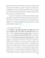productor. Permite realizar una siembra completa en caso de escasez de agua en suelos de aluvión pesado; así en 130,000 ha. con no aplicar 1.3 millares de m/ha se tendría un ahorro de 169,000 millares con los cuales se podrían sembrar 32,000 ha. de trigo con dos riegos de auxilio (INIFAP, Fichas tecnológicas trigo 2002-2011). Sin embargo, aún hay mucho que hacer en cuanto al uso y el manejo eficiente del agua. En cuanto al uso de agroquímicos, como parte de un manejo integrado de plagas y enfermedades, la estrategia del INIFAP ha incluido la liberación de insectos benéficos en el cultivo del trigo, lo cual aunado a un monitoreo constante de los requerimientos de la planta posibilita hacer un uso racional de los agroquímicos en pro de la reducción de los residuos que dañan el ambiente. (Vázquez, 2011, 36). • Manejo nitrogenado: Sensor Greenseeker. El sensor greenseeker es una tecnología co-desarrollada por el CIMMYT y la Universidad Estatal de Oklahoma en Estados Unidos y empezó a ser validada desde el ciclo O-I 2002- 2003 en el Valle del Yaqui. Forma parte de tecnologías calibradas de agricultura de precisión que permiten determinar la dosis óptima de fertilizante para un cultivo. Por tanto, a través de sus sensores infrarrojos ayuda al productor a limitar la aplicación de fertilizantes nitrogenados a los requerimientos del cultivo. En el caso del trigo, este dispositivo está diseñado para medir la cantidad de luz que reflejan las plantas en las longitudes de onda rojas e infrarrojas, las cuales indican el contenido de clorofila y la cantidad de biomasa de las plantas. Una vez tomadas las lecturas, se introducen a un modelo matemático que indica si la planta requiere o no de fertilización y de ser así proporciona la cantidad que debe ser aplicada (Vázquez, 2011, 34). Según el CIMMYT ésta tecnología ha demostrado que con un manejo agronómico adecuado de los fertilizantes es posible reducir la emisión de gases 123