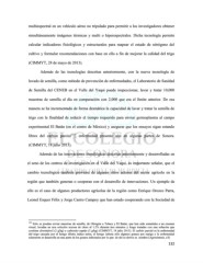 multiespectral en un vehículo aéreo no tripulado para permitir a los investigadores obtener simultáneamente imágenes térmicas y multi o hiperespectrales. Dicha tecnología permite calcular indicadores fisiológicos y estructurales para mapear el estado de nitrógeno del cultivo y formular recomendaciones con base en ello a fin de mejorar la calidad del trigo (CIMMYT, 28 de mayo de 2013). Además de las tecnologías descritas anteriormente, con la nueva tecnología de lavado de semilla, como método de prevención de enfermedades, el Laboratorio de Sanidad de Semilla del CENEB en el Valle del Yaqui puede inspeccionar, lavar y tratar 10,000 muestras de semilla al día en comparación con 2,000 que era el límite anterior. De esa manera se ha incrementado de forma dramática la capacidad de lavar y tratar la semilla de trigo con la finalidad de reducir el tiempo requerido para enviar germoplasma al campo experimental El Batán (en el centro de México) y asegurar que los ensayos sigan estando libres del carbón parcial 133 , enfermedad presente aún en algunas partes de Sonora. (CIMMYT, 18 julio 2013). Además de las innovaciones tecnológicas descritas anteriormente y desarrolladas en el seno de los centros de investigación en el Valle del Yaqui, es importante señalar, que el cambio tecnológico también proviene de algunos otros actores del sector agrícola en la región que también generan o cooperan con el desarrollo de innovaciones. Un ejemplo de ello es el caso de algunos productores agrícolas de la región como Enrique Orozco Parra, Leonel Esquer Félix y Jorge Castro Campoy que han estado cooperando con la Sociedad de 133 Solo se pueden enviar muestras de semilla, de Obregón a Toluca y El Batán, que han sido sometidas a un examen visual, lavadas en una solución acuosa de cloro al 1.2% durante tres minutos y luego tratadas con una solución que contiene clorotalonil (2 g/kg) y carboxín+captán (3 g/kg) (CIMMYT, 18 julio 2013). El carbón parcial es la enfermedad del trigo causada por el hongo tilletia indica mitra, el hongo infecta sólo algunos granos por espiga y la enfermedad solamente se desarrolla en una parte de los granos infectados por lo que de ahí se deriva su nombre (Agrosíntesis, s/f) 132