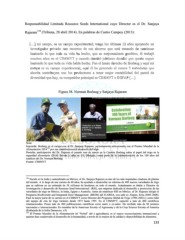 Responsabilidad Limitada Resource Seeds International cuyo Director es el Dr. Sanjaya Rajaram 134 (Tribuna, 28 abril 2014). En palabras de Castro Campoy (2013): …] [ […] m mi i c ca am mp po o, , e es s u un n c ca am mp po o e ex xp pe er ri im me en nt ta al l; ; t te en ng go o l lo os s ú úl lt ti im mo os s 1 12 2 a añ ño os s a ap po oy ya an nd do o u un n i in nv ve es st ti ig ga ad do or r p pr ri iv va ad do o c co on n r re ec cu ur rs so os s d de e s su us s a ah ho or rr ro os s q qu ue e e es st tá á t tr ra at ta an nd do o d de e c co on nt ti in nu ua ar r h ha ac ci ie en nd do o l lo o q qu ue e t to od da a s su u v vi id da a h ha a h he ec ch ho o, , q qu ue e e es s m me ej jo or ra am mi ie en nt to o g ge en né ét ti ic co o, , é él l t tr ra ab ba aj jó ó m mu uc ch ho os s a añ ño os s e en n e el l C CI IM MM MY YT T y y c cu ua an nd do o d de ec ci id di ió ó j ju ub bi il la ar rs se e d de ec ci id di ió ó q qu ue e q qu ue er rí ía a s se eg gu ui ir r h ha ac ci ie en nd do o l lo o q qu ue e t to od da a s su u v vi id da a h ha ab bí ía a h he ec ch ho o. . F Fu ue e e el l b br ra az zo o d de er re ec ch ho o d de e B Bo or rl la au ug g y y a aq qu uí í m mi i c ca am mp po o e es s s su u c ca am mp po o e ex xp pe er ri im me en nt ta al l, , a aq qu uí í é él l h ha a g ge en ne er ra ad do o a al l m me en no os s 3 3 v va ar ri ie ed da ad de es s q qu ue e a ah ho or ri it ta a c co on nt tr ri ib bu uy ye en n c co on n l lo os s p pr ro od du uc ct to or re es s a a t te en ne er r m me ej jo or r r re en nt ta ab bi il li id da ad d d de el l p pa as st te el l d de e …] d di iv ve er rs si id da ad d q qu ue e h ha ay y, , s su u c co om mp pe et ti id do or r p pr ri in nc ci ip pa al l e es s C CI IM MM MY YT T e e I IN NI IF FA AP P [ […] Figura 38. Norman Borlaug y Sanjaya Rajaram Nota: Izquierda: Borlaug en el campo con el Dr. Sanjaya Rajaram, recientemente seleccionado con el Premio Mundial de la Alimentación 2014 por sus contribuciones al desarrollo del trigo. 135 Derecha: participación del Dr. Rajaram el pasado mes de marzo en la Cumbre Borlaug sobre el papel del trigo en la seguridad alimentaria (2014) llevada a cabo en Cd. Obregón, como parte de la conmemoración de los 100 años del natalicio del Dr. Norman Borlaug Fuente: CIMMYT 134 Nacido en la India y naturalizado en México, el Dr. Sanjaya Rajaram es uno de los más respetados criadores de plantas del mundo. A lo largo de una carrera de 40 años, ha ayudado a desarrollar un máximo de 480 nuevas variedades de trigo que se cultivan en un estimado de 58 millones de hectáreas en todo el mundo. Actualmente es titular y Director de investigación y desarrollo de Resourse Seed International (RSI), una empresa dedicada al desarrollo y promoción de las variedades de trigo en México, la India, Egipto y Australia. Antes de establecer RSI en México, el Dr. Rajaram dirigió el Programa Biodiversity and Integrated Gene Management (BIGM) del ICARDA, con sede en Aleppo, Siria (2005-2008). Pasó la mayor parte de su carrera en el CIMMYT como Director del Programa Global de Trigo (1996-2002) y como líder del equipo de cría de trigo harinero desde 1973 hasta 1995. En el CIMMYT, capacitó a más de 400 científicos internacionales. Posee más de 400 publicaciones científicas como autor o co-autor. Ha recibido más de 80 premios nacionales e internacionales. Es miembro de la American Society of Agronomy y de la Crop Science Society of America (Embajada de la India Damascus. s/f). 135 El Premio Mundial de la Alimentación (el “Nobel” del a agricultura), es el mayor reconocimiento internacional a quienes han coadyuvado al desarrollo de la humanidad, a través de la mejora de la calidad y disponibilidad de alimentos. 133