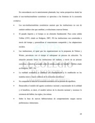 En concordancia con lo anteriormente planteado, hay varias perspectivas desde las cuales el neo-institucionalismo económico se aproxima a las fronteras de la economía evolutiva: Los neo-institucionalistas económicos asumen que las instituciones no son de carácter estático sino que cambian y evolucionan a nuevas formas. El pasado importa y el tiempo es un elemento fundamental. Pues como señala Veblen (1919, citado en Hodgson, 2007, 39) las instituciones son construidas a través del tiempo y personifican el conocimiento compartido y las adaptaciones sociales. Las instituciones, al igual que las organizaciones en la propuesta de Nelson y Winter, prevalecen con el tiempo al sobrepasar un proceso de selección: “la situación presente forma las instituciones del mañana, a través de un proceso coercitivo y selectivo, actuando sobre el sentido común del hombre” (Veblen citado en Hodgson, 2007, 39). La realidad económica es dinámica (en contraposición a lo establecido en los modelos micro y macro estáticos de la economía neoclásica). No comparten la idea de la economía neoclásica de un proceso de equilibrio. Desacredita el modelo del agente económico racional y maximizador de la utilidad y el beneficio, es decir, el modelo teórico de la elección racional y reconoce la existencia del hábito, las reglas y las rutinas. Sobre la base de nuevos hábitos/rutinas de comportamiento surgen nuevas preferencias e intenciones. 14