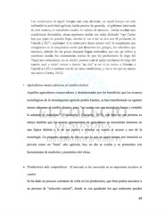 L La as s c co on nd di ic ci io on ne es s d de e a aq qu ué él l t ti ie em mp po o e er ra an n m mu uy y d di is st ti in nt ta as s; ; e en n a aq qu ué él l t ti ie em mp po o e er ra a m má ás s r re ed di it tu ua ab bl le e l la a a ac ct ti iv vi id da ad d a ag gr rí íc co ol la a, , h ha ab bí ía a p pr re ec ci io os s d de e g ga ar ra an nt tí ía a, , e el l g go ob bi ie er rn no o i in nt te er rv ve en ní ía a d de e o ot tr ra a m ma an ne er ra a, t te e s su ub bs si id di ia ab ba a m mu uc ch ho o l la a c ca ad de en na a d de e i in ns su um mo os s…había muchas más …había muchas más c co on nd di ic ci io on ne es s f fa av vo or ra ab bl le es s; ; a ah ho or ra a e es sp pé ér ra am me e t ta an nt ti it to o m me e e es st tá án n d di ic ci ie en nd do o “ “o oy ye e C Ca as st tr ro o h ha ay y q qu ue e j ju ug ga ar r e en n g gr ra an nd de es s l li ig ga as s, , a ah ho or ri it ta a t te e v va as s a a d da ar r u un n t ti ir ro o c co on n e el l p pr ro od du uc ct to or r d de e C Ca an na ad dá á y y E EU U” ”; ; e es sp pé ér ra am me e! ! s si i l le e e en nt tr ro o p pe er ro o d da am me e a ar rm ma as s! ! n no o? ?, , l la a m ma aq qu ui in na ar ri ia a q qu ue e c co om mp pr ra am mo os s e es s l la a m ma aq qu ui in na ar ri ia a u us sa ad da a q qu ue e d de es se ec ch ha an n l lo os s g gr ri in ng go os s, , l lo os s s su ub bs si id di io os s q qu ue e t te en ne em mo os s, , a ad de em má ás s d de e s se er r p po oc co os s s si ie em mp pr re e l ll le eg ga an n r re et tr ra as sa ad do os s; ; p po or r e es so o y yo o c cr ri it ti ic co o y y c cu ue es st ti io on no o m mu uc ch ho o l lo os s c co om me en nt ta ar ri io os s a ac ce er rc ca a d de e q qu ue e l lo os s p pr ro od du uc ct to or re es s d de e t tr ri ig go o d de el l Y Ya aq qu ui i n no os s e es st ta an nc ca am mo os s, , n no o e es s c ci ie er rt to o! !, , p po on nm me e a a m mí í a al l m me ej jo or r p pr ro od du uc ct to or r d de e t tr ri ig go o d de el l m mu un nd do o a aq qu uí í y y ó ór ra al le e! ! v va am mo os s a a d da ar rn no os s “ “u un n t ti ir ro o” ” a a v ve er r s si i e es s c ci ie er rt to o; ; o o l ll lé év va am me e a a C Ca an na ad dá á o o a a E EU U a a s se em mb br ra ar r c co on n é él l, , e en n o ot tr ra as s c co on nd di ic ci io on ne es s, , y y v va as s a a v ve er r q qu ue e n no o s so om mo os s t ta an n m ma al lo os s ( (C Ca as st tr ro o, , 2 20 01 13 3) ). . • Agricultores menos adversos al cambio técnico. Aquellos agricultores conservadores y desinteresados por los beneficios que los avances tecnológicos de la investigación agrícola podría traerles, se han transformado en agentes menos adversos al cambio técnico, pues “en cuanto ven una tecnología buena y rentable la adoptan de inmediato” (Valenzuela y Camacho, 2013), con base en esa premisa se intuye también que las nuevas generaciones de agricultores se encuentran inmersos en una lógica distinta a la de sus padres o abuelos en cuanto al acceso y uso de la tecnología. Un pequeño ejemplo de ello es que lo que en aquel tiempo por intuición se preveía como un “buen” año agrícola, hoy en día se evalúa y se pronostica con herramientas de medición y pronóstico del clima. Productores más competitivos. El mercado se ha convertido en un importante incentivo al cambio Se ha dado un proceso constante de criba en los productores, que bien podría asociarse a un proceso de “selección natural”, donde se van quedando los que realmente pueden 69