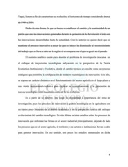 Yaqui, Sonora a fin de caracterizar su evolución; el horizonte de tiempo considerado abarca de 1944 a 2014. Dicho de otra forma, lo que se busca es establecer el cambio y la continuidad de un patrón que une las innovaciones generadas durante la gestación de la Revolución Verde con las innovaciones desarrolladas hasta la actualidad. Con lo anterior se quiere decir que se mantiene el proceso innovativo a pesar de que se intuye ha disminuido el reconocimiento del trabajo que se lleva a cabo en la región si se compara con el que se gozó en el pasado. El sustento analítico usado para abordar el problema de investigación descansa en el enfoque de trayectorias tecnológicas subyacente en la perspectiva de la Teoría Económica Institucional y Evolutiva, donde el cambio técnico se concibe como un proceso endógeno que posibilita la configuración de senderos tecnológicos de innovación. Con ello, se supone un carácter dinámico en el funcionamiento del sector agrícola en el largo plazo y una visión institucional-evolutiva para explicar su comportamiento y la generación de nuevas tecnologías como basamento esencial de su evolución. Es a partir de lo anterior, que surge la originalidad e importancia del tema de investigación; pues los procesos de innovación y gestión tecnológica en la agricultura son un tópico poco frecuente en el ámbito académico y en la perspectiva teórica del enfoque evolucionista del cambio tecnológico. En ésta última existen estudios sobre los procesos de innovación que enfrentan las firmas en el sector industrial principalmente, dejando de lado los procesos que en el sector agrícola, el territorio y sus actores e instituciones llevan a cabo para generar innovación. En ese sentido, son pocos los estudios enmarcados en dicha 4