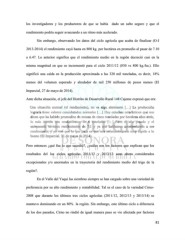 los investigadores y los productores de que se había dado un salto seguro y que el rendimiento podría seguir avanzando a un ritmo más acelerado. Sin embargo, observando los datos del ciclo agrícola que acaba de finalizar (O-I 2013-2014) el rendimiento cayó hasta en 800 kg. por hectárea en promedio al pasar de 7.10 a 6.47. Lo anterior significa que el rendimiento medio en la región decreció casi en la misma magnitud en que se incrementó para el ciclo 2011/12 (830 vs 800 kg./ha.). Ello significó una caída en la producción aproximada a las 320 mil toneladas, es decir, 18% menos del volumen esperado y alrededor de mil 250 millones de pesos menos (El Imparcial, 27 de mayo de 2014). Ante dicha situación, el jefe del Distrito de Desarrollo Rural 148 Cajeme expresó que era: …] U Un na a s si it tu ua ac ci ió ón n n no or rm ma al l ( (e el l r re en nd di im mi ie en nt to o) ), , n no o e es s a al lg go o a al la ar rm ma an nt te e [ […] L La a p pr ro od du uc cc ci ió ón n l lo og gr ra ad da a t ti ie en ne e v va al lo or re es s c co on ns si id de er ra ad do os s n no or rm ma al le es s [ […] Hay estudios estadísticos que nos …] Hay estudios estadísticos que nos d di ic ce en n q qu ue e h ha a h ha ab bi id do o p pr ro om me ed di io os s d de e m me en no os s d de e c ci in nc co o t to on ne el la ad da as s p po or r h he ec ct tá ár re ea a a añ ño os s a at tr rá ás s, , …] l lo o m má ás s c co om mú ún n s so on n r re en nd di im mi ie en nt to os s d de e 6 6 t to on ne el la ad da as s [ […] P Pe er ro o e el l a añ ño o p pa as sa ad do o y y e el l a an nt te ep pa as sa ad do o t tu uv vi im mo os s r re en nd di im mi ie en nt to os s d de e 7 7. .1 1 y y y ya a n no os s h ha ab bí ía am mo os s a ac co os st tu um mb br ra ad do o a a e es se e r re en nd di im mi ie en nt to o, , y y y yo o v ve eo o q qu ue e l lo o q qu ue e p pa as sa a e es s q qu ue e n no os s a ac co os st tu um mb br ra am mo os s m mu uy y r rá áp pi id do o a a l lo o b bu ue en no o ( (E El l I Im mp pa ar rc ci ia al l. . 3 31 1 d de e m ma ay yo o d de e 2 20 01 14 4) ). . Pero entonces ¿qué fue lo que sucedió?, ¿cuáles son los factores que explican que los resultados del los ciclos agrícolas 2011/12 y 2012/13 sean ahora considerados excepcionales y/o anormales en la trayectoria del rendimiento medio del trigo de la región?. En el Valle del Yaqui las siembras siempre se han cargado sobre una variedad de preferencia por su alto rendimiento y rentabilidad. Tal es el caso de la variedad Cirno- 2008 que durante los últimos tres ciclos agrícolas (2011/12, 2012/13 y 2013/14) se mantuvo dominando en un 80% la región. Sin embargo, este último ciclo a diferencia de los dos pasados, Cirno no rindió de igual manera pues se vio afectada por factores 81