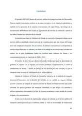 Conclusiones El periodo 2009-2012 dentro del servicio público de transporte urbano de Hermosillo, Sonora, registró importantes cambios en su marco normativo, en la manera de administrar y también en la operación de la empresa concesionaria. De igual forma, fue testigo de la incorporación del Gobierno del Estado en la prestación del servicio al comenzar a operar en las calles él mismo los vehículos de la Ruta 18. La decisión que tomó el Gobierno del Estado en convertir al transporte urbano en un servicio público subsidiado, detonó una serie de complicaciones que con el paso del tiempo hizo más compleja la situación. En ese sentido, la primera conclusión que se desprende de esta investigación es que el subsidio y las fallas en la entrega de los recursos por concepto del mismo, fue la parte fundamental dentro del conflicto entre Gobierno del Estado y los concesionarios durante en el periodo de 2009 a 2012. El motivo de esto fue que dentro del diseño institucional que las autoridades de gobierno en conjunto con la empresa concesionaria diseñaron e implementaron, se omitió el señalamiento de fechas y formas de entrega de los recursos por este concepto, lo que se interpreta como un error en la delineación de la política pública. Además, el Gobierno del Estado de Sonora fue impreciso en la medición de impactos económicos/financieros con la decisión del subsidio, en ese sentido, en ninguna reforma, acuerdo o decreto, se estipula de manera concreta las fuentes de financiamiento para poder solventar los egresos producto del transporte subsidiado, lo que obligó a la autoridad a utilizar argumentos relacionados a la falta de recursos económicos como medida de evasión de pago a los concesionarios. Es así como la decisión de implementar la figura del subsidio en el servicio público de transporte urbano provocó que el Gobierno estatal se viera en la necesidad de reestructurar 147