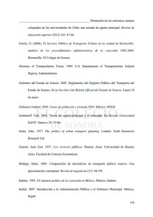 ______________________________________________ Dimensión de los máximos cuerpos colegiados de las universidades de Chile; una mirada de agente principal. Revista de educación superior (XLI) 162: 47-66. García, O. (2006). El Servicio Público de Transporte Urbano de la ciudad de Hermosillo: Análisis de los procedimientos administrativos de la concesión 1982-2004. Hermosillo. El Colegio de Sonora. Glossary of Transportation Terms. 1994. U.S. Departament of Transportation: Federal Higway Administration. Gobierno del Estado de Sonora. 2005. Reglamento del Registro Público del Transporte del Estado de Sonora. En la Sección I del Boletín Oficial del Estado de Sonora. Lunes 10 de enero. Gobierno Federal. 2010. Censo de población y vivienda 2010. México: INEGI Gorbaneff, Yuri. 2003. Teoría del agente-principal y el mercadeo. En Revista Universidad EAFIT. Número 29. 75-86. Grant, John. 1977. The politics of urban transport planning. London: Earth Resources Research Ltd. Guareti, Juan José. 1957. Los servicios públicos. Buenos Aires: Universidad de Buenos Aires. Facultad de Ciencias Económicas. Hidalgo, Darío. 2005. Comparación de alternativas de transporte público masivo. Una aproximación conceptual. Revista de ingeniería (21): 94.105. Indetec. 1993. El régimen jurídico de la concesión en México. México: Indetec. Inafed. 2007. Introducción a la Administración Pública y el Gobierno Municipal. México. Segob. 152