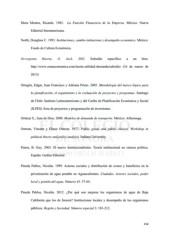 Mora Montes, Ricardo. 1982. La Función Financiera de la Empresa. México: Nueva Editorial Interamericana. North, Douglass C. 1993. Instituciones, cambio intituciona y desempeño economico. México: Fondo de Cultura Económica. Ocrospoma Huerta, O. Jack. 201l. Subsidio específico a un bien. http://www.zonaeconomica.com/teoria-utilidad-demanda/subsidio (16 de marzo de 2013) Ortegón, Edgar, Juan Francisco y Adriana Prieto. 2005. Metodología del marco lógico para la planificación, el seguimiento y la evaluación de proyectos y programas. Santiago de Chile: Instituto Latinoamericano y del Caribe de Planificación Económica y Social (ILPES) Área de proyectos y programación de inversiones. Ortúzar S., Juan de Dios. 2000. Modelos de demanda de transporte. México: Alfaomega. Ostrom, Vincent y Elinor Ostrom. 1977. Public goods and public choices. Workshop in political theory and policy analysis. Indiana University. Peters, B. Guy. 2003. El nuevo institucionalismo. Teoría institucional en ciencia política. España: Gedisa Editorial Pineda Pablos, Nicolás. 1999. Actores sociales y distribución de costos y beneficios en la privatización de agua potable en Aguascalientes. Ciudades. Actores sociales, poder local y gestión del agua. Número 43. 57-64. Pineda Pablos, Nicolás. 2012. ¿Por qué son mejores los organismos de agua de Baja California que los de Sonora? Instituciones locales y desempeño de los organismos públicos. Región y Sociedad. Número especial 3: 181-212. 154
