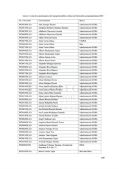 Anexo 3. Lista de concesionarios del transporte público urbano de Hermosillo actualizada hasta 2009. No. Concesión Concesionario Marca P020324HLLO. Abel Jauregui Duarte Administración SUBA P020313HLLO. Abraham Heriberto Sánchez Bautista Administración SUBA P020428HLLO. Adalberto Chavarria Corrales Administración SUBA P020098HLLO. Adalberto Maytorena Zepeda Administración SUBA P020019HLLO. Adela Flores de García Administración SUBA P020475HLLO. Alain Torres Ochoa FAMSA P020281HLLO. Alain Torres Ochoa Dina P020275HLLO. Alain Torres Ochoa Administración SUBA P020395HLLO. Alberto Bustamante López Administración SUBA P020393HLLO. Alberto Bustamante López Administración SUBA P020187HLLO. Alberto García Avila Administración SUBA P020116HLLO. Alberto Romo Romo Administración SUBA P020417HLLO. Alejandro Bringas Espinoza Administración SUBA P020284HLLO. Alejandro Ríos Higuera Administración SUBA P020242HLLO. Alejandro Ríos Higuera Administración SUBA P020272HLLO. Alejandro Ríos Higuera Administración SUBA P020047HLLO. Alfonso Cordova Administración SUBA P020233HLLO. Alicia Martínez Rivera Administración SUBA P020070HLLO. Alicia Martínez Rivera Administración SUBA P020410HLLO. Alma Angélica Siqueiros Elías Administración SUBA P020254HLLO. Alma Leticia Puentes Álvarez Administración SUBA P020033HLLO. Alma Leticia Ruíz Gonzalez Administración SUBA P020121HLLO. Alma Lorenia Duarte Moreno Administración SUBA P020398HLLO. Alonso Burrola Encinas Administración SUBA P020123HLLO. Amado Bobadilla Pardo Administración SUBA P020252HLLO. Amelia Oviedo Pacheco Administración SUBA P020447HLLO. Ana Dolores Rascón Barraza Administración SUBA P020106HLLO. Ana Lourdes Rodríguez Hurtado Administración SUBA P020134HLLO. Anaida Ramírez Trujillo Administración SUBA P020020HLLO. Ángel Cárdenas Lara Administración SUBA P020085HLLO. Angelica María Miranda Torres Administración SUBA P020044HLLO. Antonia Durazo Durazo Administración SUBA P020446HLLO. Antonio Noriega Arvizu Administración SUBA P020029HLLO. Antonio Tapia Pino Administración SUBA P020315HLLO. Antonio Yanez Sagasta Administración SUBA P020413HLLO. Ariel Bustamante López Administración SUBA P020182HLLO. Armando Burgos Paredes Administración SUBA P020081GYM Autobuses Urbanos Turismo y Foraneo de DINA Guaymas, S.A. de C.V. P020185HLLO. Beatriz Castro Tapia Mercedes Benz 169
