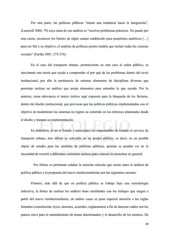 Por otra parte, las políticas públicas “tienen una tendencia hacia la integración”, (Lasswell 2000, 79) cuya meta de sus análisis es “resolver problemas prácticos. No puede por esta razón, reconocer los límites de algún campo establecido para propósitos analíticos […] para ser fiel a su objetivo, el analista de políticas pronto tendría que incluir todas las ciencias sociales” (Farfán 2007, 275-276). En el caso del transporte urbano, perteneciente en este caso al orden público, es inexistente una teoría que ayude a comprender el por qué de los problemas dentro del nivel institucional, por ello la pertinencia de retomar elementos de disciplinas diversas que permitan realizar un análisis que arroje elementos para entender lo que sucede. Por lo anterior, toma relevancia el marco teórico aquí expuesto para la búsqueda de los factores, dentro del diseño institucional, que provocan que las políticas públicas implementadas con el objetivo de modernizar los sistemas no logren su cometido en los términos planteados desde el diseño y durante su implementación. En definitiva, al ser el Estado y municipios los responsables de brindar el servicio de transporte urbano, éste último se convierte en un asunto público; es decir, en un posible objeto de estudio para los analistas de políticas públicas, quienes se pueden ver en la necesidad de recurrir a diferentes corrientes teóricas para conocer la estructura en general. Por último es pertinente señalar la estrecha relación que existe entre el análisis de política pública y la propuesta del nuevo institucionalismo por las siguientes razones: Primero, más allá de que en política pública se trabaje bajo una metodología inductiva, la forma de realizar los análisis tiene similitudes con los trabajos que surgen a partir del nuevo institucionalismo; en ambos casos se pone especial atención a las reglas formales (constitución, leyes, decretos, acuerdos, reglamentos) a fin de detectar cuáles son los puntos clave para el entendimiento de temas determinados y el desarrollo de los mismos. De 39