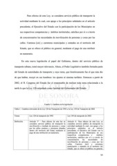Para efectos de esta Ley, se considera servicio público de transporte la actividad mediante la cual, con apego a los principios señalados en el artículo precedente, el Ejecutivo del Estado con la participación de los Municipios en sus respectivas competencias y ámbitos territoriales, satisface por sí o a través de concesionarios las necesidades de movilización de personas y cosas por las calles. Caminos [sic] y carreteras municipales y estatales en el territorio del Estado, que se ofrece al público en general, mediante el pago de una retribuir en numerario. En esta nueva legislación el papel del Gobierno, dentro del servicio público de transporte urbano, tomó mayor relevancia. Ahora, el Poder Legislativo también formaba parte del listado de autoridades de transporte y cuyo tema, que históricamente fue el que más dio de que hablar, recayó en sus hombros: los ajustes al sistema tarifario. Entonces a partir de 2002, el H. Congreso del Estado fue el responsable de realizar toda tarea relacionada a la tarifa lo que la Ley 120 estipulada como facultad del Gobernador del Estado. Cuadro 3. Cambios en la legislación Tabla 1.- Cambios relevantes de la Ley 120 de Transporte de 1992 a la Ley 149 de Transporte de 2002 Temas Ley 120 de transporte de 1992 Ley 149 de transporte de 2002 Definición Articulo 3° – Para efectos de esta ley se Artículo 4.- Para efectos de esta Ley, se considera servicio público de transporte la considera servicio público de transporte la movilización o traslado de personas y cosas actividad mediante la cual, con apego a los por las calles caminos y carreteras situados principios señalados en el artículo dentro del territorio del Estad, mediante el precedente, el Ejecutivo del Estado con la pago de una retribución en numerario. participación de los Municipios en sus respectivas competencias y ámbitos territoriales, satisface por sí o a través de concesionarios las necesidades de movilización de personas y cosas por las calles. Caminos [sic] y carreteras municipales y estatales en el territorio del Estado, que se ofrece al público en general, 53