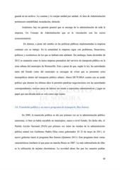 guarda en un archivo. Lo cuentan y lo cotejan unidad por unidad. Al área de Administración pertenecen contabilidad, recaudación, almacén. Asimismo, hay un gerente general que se encarga de la administración de toda la empresa. Un Consejo de Administración que es la vinculación con los socios (concesionarios). En síntesis, a pesar del cambio en las políticas públicas implementadas la empresa continuó con su trabajo. En la actualidad la empresa sigue con problemas, financieros, políticos y económicos de los que se hablará más adelante. Sin embargo, hasta diciembre de 2012 se mantenía como la única empresa prestadora del servicio de transporte público en la zona urbana del municipio de Hermosillo. Esto a pesar de que, según la ley, las autoridades tanto del Estado como del municipio se encargan de evitar que se presenten actos monopólicos dentro del transporte público urbano. Ahora SICTUHSA cuenta con un poder político que durante los últimos años le permitió paralizar negociaciones con las autoridades correspondientes, realizar paros de labores sin miedo a represalias administrativas y jugar un papel que una década atrás se veía como algo lejano. 3.6. Transición política y un nuevo programa de transporte; Bus Sonora En 2009, la transición política se dio por primera vez en la administración pública sonorense, si bien ya había sucedido en municipios, nunca a nivel Estado. En dicho año, el Partido Acción Nacional (PAN) por primera vez tomó las riendas de la administración pública estatal con Guillermo Padrés Elías como gobernador. El 23 de mayo de 2011, el nuevo gobierno lanzó el programa Bus Sonora (Quintero 2011). Este programa tiene varias características similares al que puso en marcha Bours en 2007. La más sobresaliente de ellas es la utilización de tarjetas electrónicas. La novedad ahora fue que los usuarios podían 82