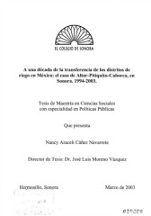 EL COLEGIO DE SONORA A una década de la transferencia de los distritos de riego en México: el caso de Altar-Pitiquito-Caborca, en Sonora. 1994-2003. Tesis de Maestría en Ciencias Sociales con especialidad en Políticas Públicas Que presenta Nancy Araceli Cáñez Navarrete Director de Tesis: Dr. José Luis Moreno Vázquez Hermosillo, Sonora Marzo de 2003