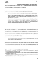 104 ELCOLEGIO DESONORA Transferencia del Distrito de Riego 037, Altar-Pitiquito-Caborca alguna parte de la encuesta se revela que 4 de 32 Usuarios encuestados establecen que en el Distrito de Riego está monopolizado el uso del agua. La denuncia es sobre todo contra los productores de espárrago en la región: "Losesparragueros extraen a máspiesde profundidad y poresolosmantos se estánbajando" . "Hace 6 o 7 años se sacaban las 10' de los 2 pozos de 10', ahora no pueden funcionar al mismo tiempo y solo se sacan5' y es que los esparragueros chupan el agua del acuífero. El 80%de los esparragueros son de otros lugares" "Existe mucha inconformidad por el manejo que lleva a cabo la Asociación de Usuarios. Existe un pequeño grupo de personas dentro de la Asociación que toma las decisiones. Unas cuantas personas se están quedando con el agua de Caborca. Hay decepción por la corrupción de autoridades, mismas que permiten o autorizan que 3 personas en la región siembren grandes superficies, estas personas llegan, trabajan por 10 años ydespués sevan"23 Por otro lado, el Presidente de la Asociación de Usuarios, Arnulfo Santiago Palacios ha manifestado ante el diario El Imparcial que "el abatimiento de los mantos acuíferos en la región de Caborca es una realidad que preocupa a los productoresante el peligro que representa al sector agrícola". Además agregó: "Algunos productores foráneos que no quieren reconocer el abatimiento de los mantos, como son algunos dedicados al cultivo del espárrago." Mencionóque son agricultores que sólo vienen a trabajar en la zona entre diez y quince años para posteriormenteretirarse a otra parte. Indicó que a pesar de la actitud que por 20 Entrevista al Gerente General de la ASUDIR, 17 de diciembre de 2003. 21 Comentario del Sr. Alejandro Reyna, miembro del Ejido Caborca al momento de aplicar un cuestionario de la encuesta, 23 de Julio de 2003. 22 Comentario del Sr. Javier Ortíz, perteneciente al sector Colono al momento de aplicar un cuestionario de la encuesta, 11 de Junio de 2003. 23 Comentario al momento de aplicar un cuestionario de la encuesta a una persona perteneciente al sector Colono,mismoque pidió no revelar su nombre, 15de Julio de 2003. 24 DiarioElImparcial, secciónNoroeste, 7 de agostode 2002. 104