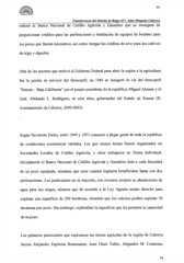 44 ELCOLEGIODEWNORA Transferencia del Distrito de Riego 037, Altar-Pitiquito-Caborca ordenó al Banco Nacional de Crédito Agrícola y Ganadero que se encargara de proporcionar créditos para las perforaciones e instalación de equipos de bombeo para los pozos que fueran necesarios, así como otorgar los créditos de avíopara los cultivos de trigo y algodón. Otra de las razones que motivóal Gobierno Federal para abrir la región a la agricultura fue la puesta en servicio del ferrocarril; en 1948 se inauguró la vía del ferrocarril "Sonora- Baja California" por el propiopresidente de la república,Miguel Alemány el Gral. Abelardo L. Rodríguez, en esos años, gobernador del Estado de Sonora (H. Ayuntamiento de Caborca, 2000-2003). Según Navarrete Pacho, entre 1949 y 1953 comenzó a llegar gente de toda la república de condiciones económicas variadas. Los que menos tenían fueron organizados en Sociedades Locales de Crédito Agrícola, y otros trabajaron en forma individual. Inicialmente el Banco Nacional de Crédito Agrícola y Ganadero dotó a cada Sociedad de un pozo equipado, mientras que unos cuantos lograron beneficiarse hasta con dos perforaciones. Los particulares en su mayoría, con recursos propios se abastecieron de agua para sus riegos, mismos que de acuerdo a la Ley Agraria tenían derecho para explotar una superficie de 200 hectáreas, mientras que los colonos podían explotar 50 hectáreas por socio. Sin embargo, explotaban la superficie que les permitía la capacidad de su pozo. Los primeros particulares que explotaron las tierras agrícolas de la región de Caborca fueron Alejandro Espinosa Bustamante, Juan Chait Tuller, Alejandro M. Contreras, 44