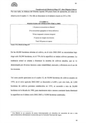 66 ELCOLEGIOPE SONORA Transferencia del Distrito de Riego 037, Altar-Pitiquito-Caborca Por otro lado, la Jefatura del Distrito reporta 258 pozos fuera de operación, tal como se observa en el cuadro 11. Por ello se desconoce si el número exacto es 253 o 258. CUADRO 11 POZOS FUERA DE OPERACIÓN FÍSICA (2003) 118pozosse encuentran en Batería1 29 se encuentran agregados en forma definitiva 76 han traspasado volumen temporal 35 pozos sin ningún movimiento Total 258 pozos sin operar Fuente: CNA, Distrito de Riego 037 De las 60,000 hectáreas abiertas al cultivo, en el ciclo 2002-2003 se encontraban bajo riego solo 26,300 hectáreas, en el 75% de la superficie se tenían cultivos perennes. La tendencia actual se orienta a disminuir la siembra de cultivos anuales, que se ve determinada por diversos factores como rentabilidad, mercado y eficiencia en el uso de los recursos. Tal como puede apreciarse en el cuadro 12, de 50,900 hectáreas de cultivos anuales en 1970, en el ciclo agrícola 2002-2003 se descendió a 6,400 y por otro lado, de 3,200 hectáreas de cultivos perennes establecidos en 1970, se ascendió a más de 26,000 hectáreas en la década de 1980, para mantenerse más o menos constante hasta disminuir la superficie en el último ciclo 2002-2003 a 19,900 hectáreas sembradas. Una Batería es un conjunto de pozos interconectados y/o derechos de concesión de uno o más aprovechamientosdebidamente reconocidos por la Comisión Nacional del Agua. 66