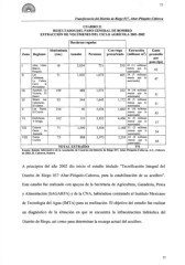 77 El COLEGIODESONORA Transferencia del Distrito de Riego 037, Altar-Pitiquito-Caborca CUADRO 21 RESULTADOS DEL PARO GENERAL DE BOMBEO EXTRACCIÓN DE VOLÚMENES DEL CICLO AGRÍCOLA 2001-2002 Hectáreas regadas Abatimiento Con riego Extracción Gasto Zona Regiones (cm.) Anuales Perennes presurizado (millones m3) promedio por pozo (lps) I Altar, Llano 18 2,834 721 550 43 (11 millones Blanco, menos que lo 63 Pitiquito. autorizado) II Las 71 1,020 1,073 405 34 (7 millones Calabazas, menos que lo 47 La Calera, autorizado) Cerro la Proveedora. III Aquituni, La 109 488 1,073 222 36 (16 millones Victoria, El menos que lo 51 Deseo. autorizado) IV Bizani, Las 92 544 1,645 1,172 40 (5 millones Calenturas, menos que lo 51 El Álamo. autorizado) V Los Sapos, 214 40 3,034 1,860 61 (16 millones El Coyote menos que lo 63 autorizado) VI Enchilayas, 102 110 5,955 4,406 52 (8 millones Y Griega. menos que lo 57 autorizado) VII Colonia 71 1,590 3,506 3,168 51 (2 millones Oeste, La menos que lo 54 Alameda autorizado) VIII Franja 73 888 3,973 2,259 54 (4 millones Costera menos que lo 64 autorizado) TOTAL EXTRAÍDO 371 Fuente: Boletín Informativo de la Asociación de Usuarios del Distrito de Riego 037, Altar-Pitiquito-Caborca, A.C., Febrero de 2003 H. Caborca, Sonora. A principios del año 2002 dio inicio el estudio titulado "Tecnifícación Integral del Distrito de Riego 037 Altar-Pitiquito-Caborca, para la estabilización de su acuífero". Este estudio fue realizado con apoyos de la Secretaría de Agricultura, Ganadería, Pesca y Alimentación (SAGARPA) y de la CNA, habiéndose contratado al Instituto Mexicano de Tecnología del Agua (IMTA) para su realización. El objetivo del estudio fue realizar un diagnóstico de la situación en que se encuentra la infraestructura hidráulica del Distrito de Riego, así como para determinar la recarga actual del acuífero. 77