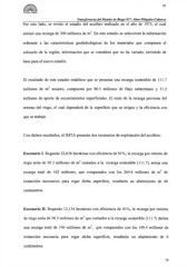 79 ELCOLEGIODESONORA Transferencia del Distrito de Riego 03 7,Altar-Pitiquito-Caborca Por otro lado, se revisó el estudio del acuífero realizado en el año de 1975, el cual estimó una recarga de 300 millones de m . En este estudio se seleccionó la información referente a las características geohidrológicas de los materiales que componen el subsuelo de la región, información que se considera que no ha variado, sirviendo de base para el nuevo estudio. El resultado de este estudio establece que se presenta una recarga sostenible de 111.7 millones de m3 anuales, compuesta por 80.5 millones de flujo subterráneo y 31.2 millones de aporte de escurrimientos superficiales. El resto de la recarga proviene del retorno del riego, el cual dependerá de la superficie que se irrigue y la eficiencia con que se trabaje. Con dichos resultados, el IMTA presenta dos escenarios de explotación del acuífero: Escenario I. Regando 22,636 hectáreas con eficiencia de 81%, la recarga por retorno de riego sería de 50.3 millones de m3 sumados a la recarga sostenible (111.7), arroja una recarga total de 162 millones, que comparados con los 264.6 millones de m3 de extracción necesarios para regar dicha superficie, resultaría un abatimiento de 46 centímetros. Escenario II. Regando 12,134 hectáreas con eficiencia de 81%, la recarga por retorno deriego sería de 28.3 millones dem3 que sumados a la recarga sostenible (111.7) darían una recarga total de 140 millones de m3, que comparados con los 149.4 millones de extracción necesaria para regar dicha superficie, resultaría un abatimiento de 6 centímetros. 79