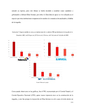 Ilustración 7. Espacio medido en notas, por instituciones de la coalición PRI que hablaron de la tragedia de la