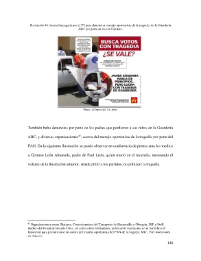 Ilustración 16. Inserción pagada por el PT para denunciar manejo oportunista de la tragedia de la Guardería