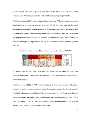 Tabla 1. Votos obtenidos por el PRI en elecciones de gobernador de Sonora 1997-2009