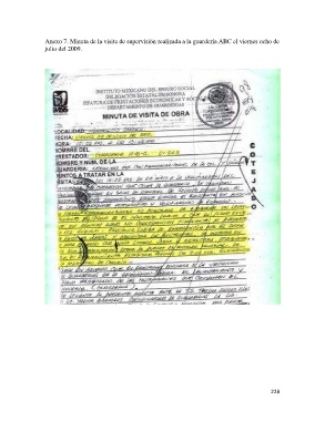Anexo 7. Minuta de la visita de supervisión realizada a la guardería ABC el viernes ocho de julio del 2009. 228