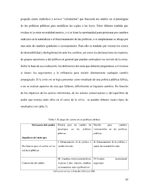III. Cambios retóricos/simbólicos IV.Cambio incremental