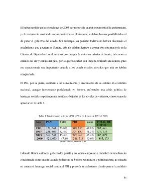 Tabla 1 Tendencia del voto para PRI y PAN en Sonora de 1991 al 2009.