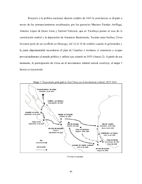 momento, la participación de Urrea en el movimiento federal radical concluyó, el mapa 3