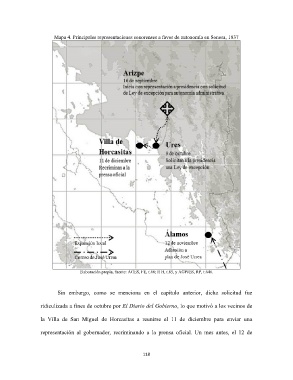 Mapa 4. Principales representaciones sonorenses a favor de autonomía en Sonora, 1837