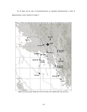 Mapa 5. Ritmo de expansión del pronunciamiento de Arizpe en las poblaciones sonorenses