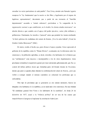 sonorenses y la población capitalina, es decir, reiteraba a los habitantes de la frontera que
