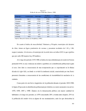 A lo largo del periodo 1870-1900, el índice de masculinidad para el estado de Sonora
