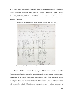 de los brotes epidémicos de viruela, ocurridos en nueve localidades sonorenses (Hermosillo,