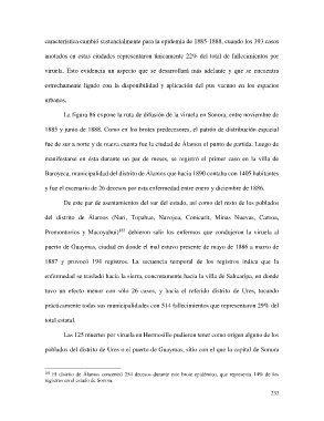 La figura 86 expone la ruta de difusión de la viruela en Sonora, entre noviembre de