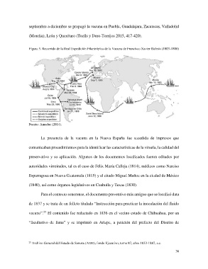 Figura 5. Recorrido de la Real Expedición Filantrópica de la Vacuna de Francisco Xavier Balmis (1803-1806)